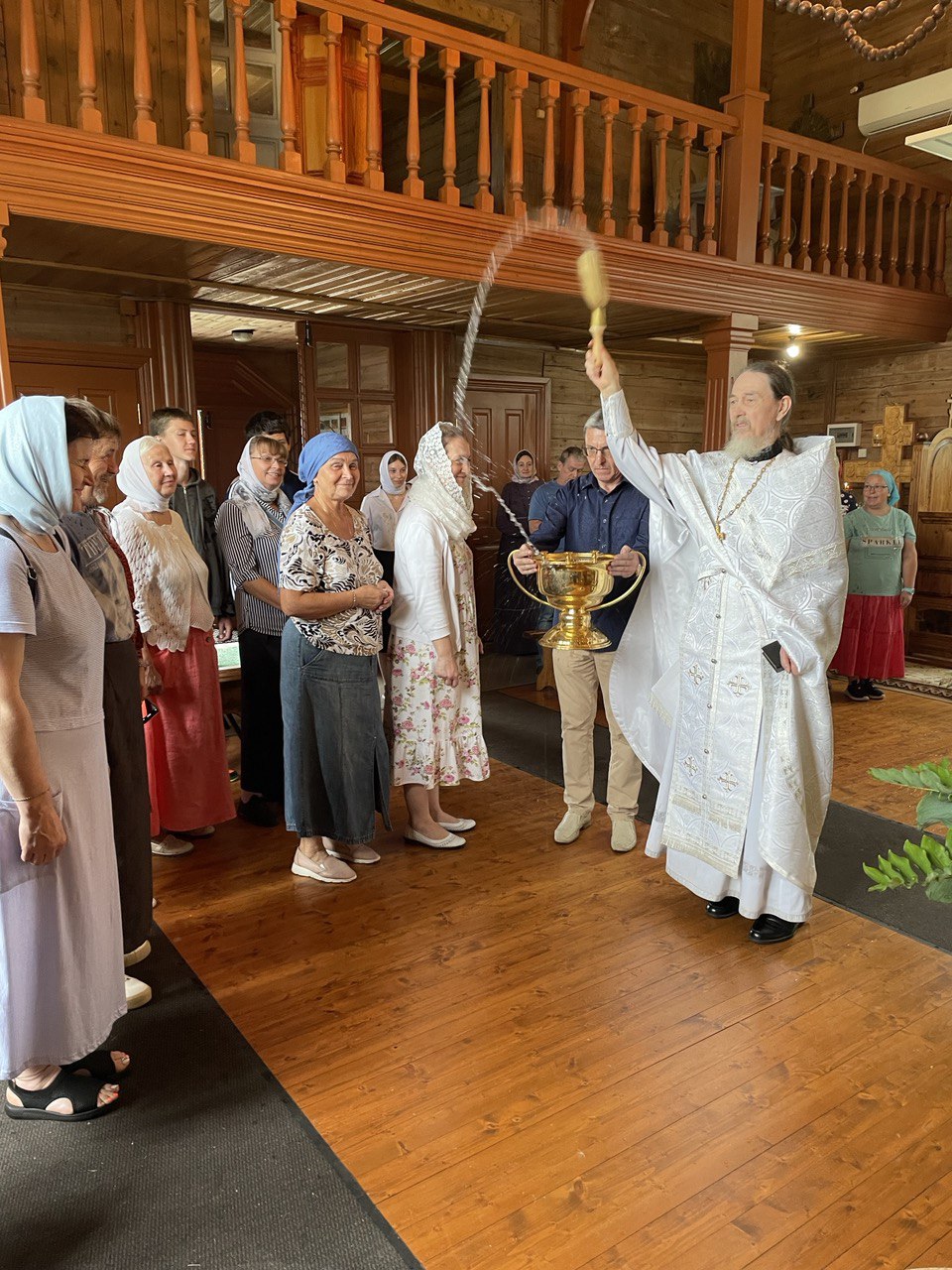 На Божественную Литургию в Никольском храме Ольгинского женского монастыря на истоке реки Волги собрались прихожане и гости. После богослужения был совершен молебен с освящением плодов.