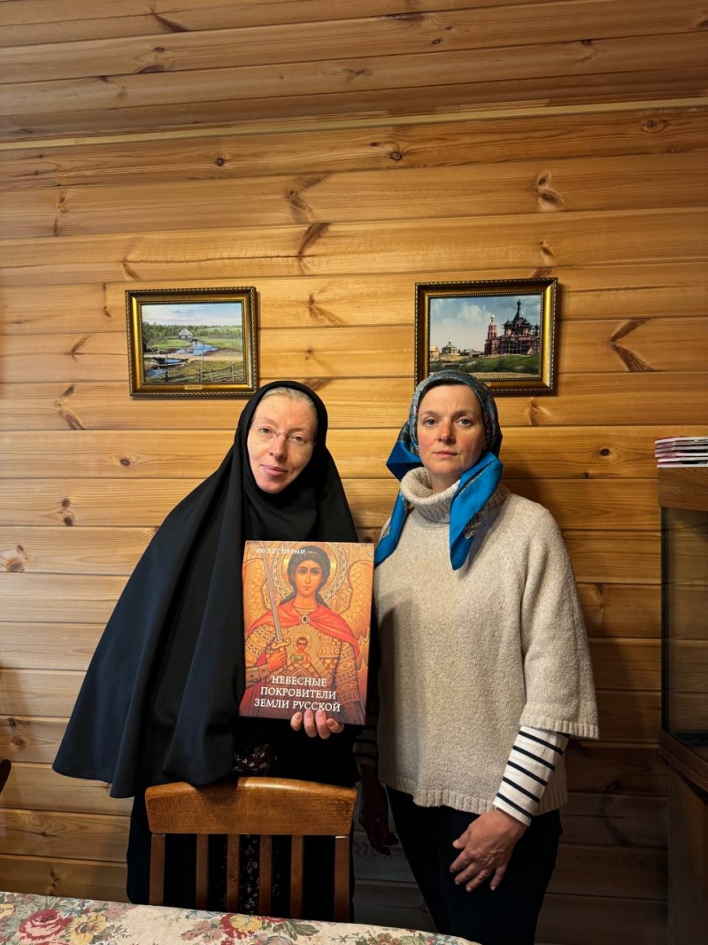 В конце сентября к нам в монастырь приезжали гости. Среди них была Надежда Проказина, руководитель частного музея с хорошей коллекцией иконописи. Эта встреча получилась очень интересной и полезной. Надежда поделилась с нами опытом организации выставок, издания каталогов, реставрации памятников искусства. Хочется верить, что этот опыт нам окажется полезным, так как не теряем надежды постепенно обустроить не истоке Волги маленький музей . На прощание Надеждой был подарен каталог выставки икон, посвященной теме Воинства Небесного.